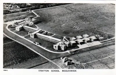 Stratton school was originally constructed during the late 1940s, being built in such a fashion that it could be used as a hospital in the event of another major conflict akin to the Second World War. The school first opened its doors to students in 1950 as "Biggleswade Grammar-Technical School" though much of the facility remained unfinished at this time and construction would continue over the following years, with the site not finally completed until 1956.