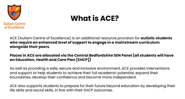 "The Stratton School Autism Centre of Excellence (ACE) will provide a safe, secure and inclusive environment for those who need it, and every individual will be known, valued and supported to achieve their full potential.