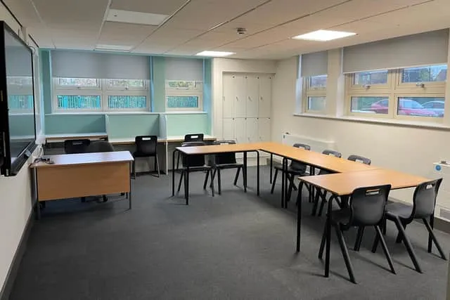 The former sixth-form space has been transformed into three classrooms that can each accommodate eight pupils and designed in calming greens and blues were to encourage focus and minimise overstimulation.