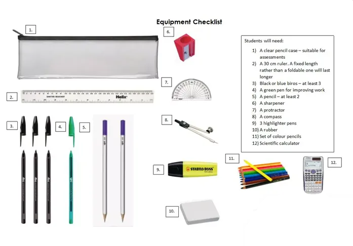 All students should carry their resources and equipment in a sensible school bag. We ask that the following is brought to school daily. Cooking ingredients can be stored in the catering rooms ahead of AM registration and PE equipment should be brought in a separate bag.