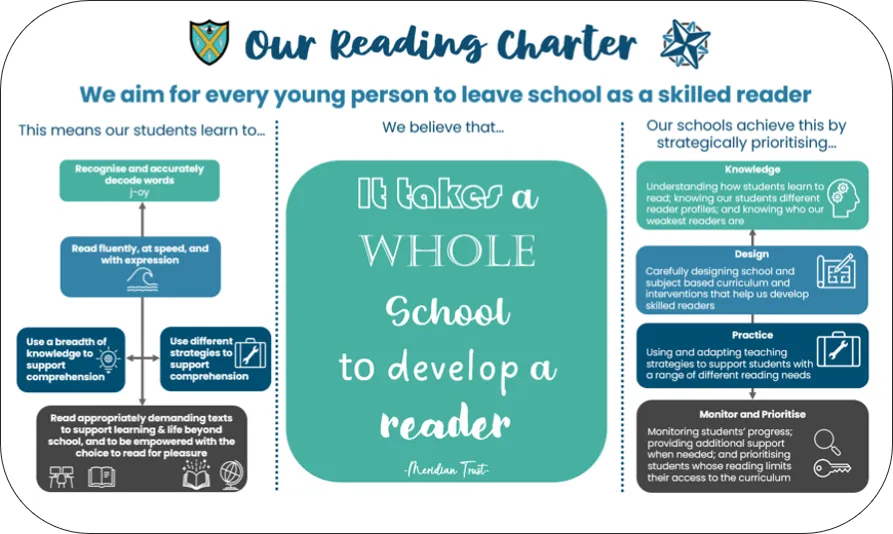 Our Reading Charter expresses this commitment, along with our understanding of what students need to progress into skilled readers, and how we go about achieving this.